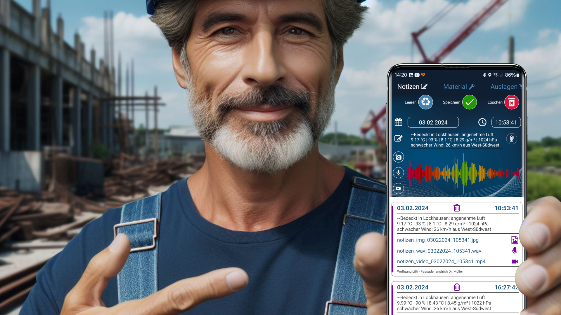 Auf der Startseite befindet sich die Wetteranzeige einer umliegenden Wetterstation in ihrer Nähe, die Sie per GPS, geziehlt auswählen können.